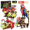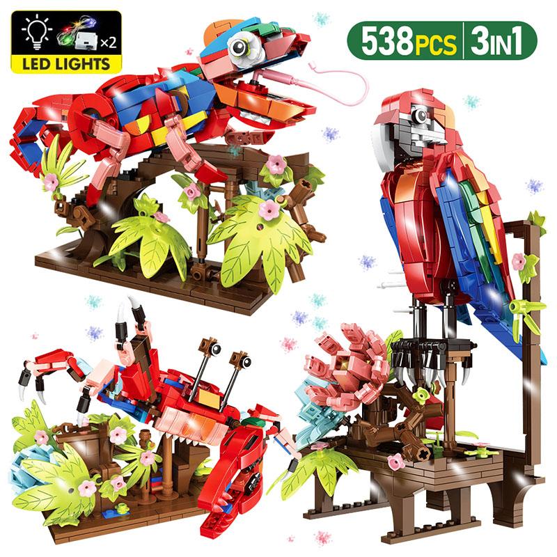 MOC 3 w 1 Seria Dżungla Amazońska Klocki Model Zwierzęcia Symulacja Papuga Kameleont Krab Kreskówkowe Klocki Zabawki dla Dzieci Prezenty