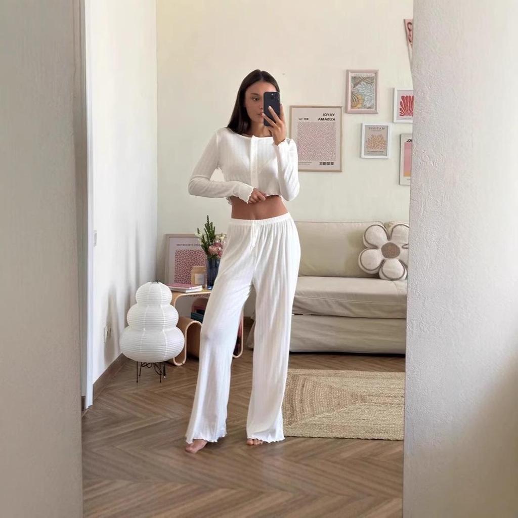 Przedstawiamy idealne połączenie komfortu i stylu na chłodniejsze pory roku. Ten zestaw dzianinowych długich rękawów i spodni z mieszanki bawełny został zaprojektowany z myślą zarówno o europejskich, jak i amerykańskich gustach modowych.. Wykonany z wysokiej jakości bawełny, ten zestaw obiecuje ciepło i miękkość dla skóry.. Idealny na jesień i zimę, jego modny design zapewnia, że pozostaniesz na czasie, jednocześnie otulając się przytulną atmosferą.. Niezależnie od tego, czy relaksujesz się w domu, czy wychodzisz na nieformalne wyjście, ten wszechstronny zestaw oferuje harmonijne połączenie wygody i współczesnego stylu.