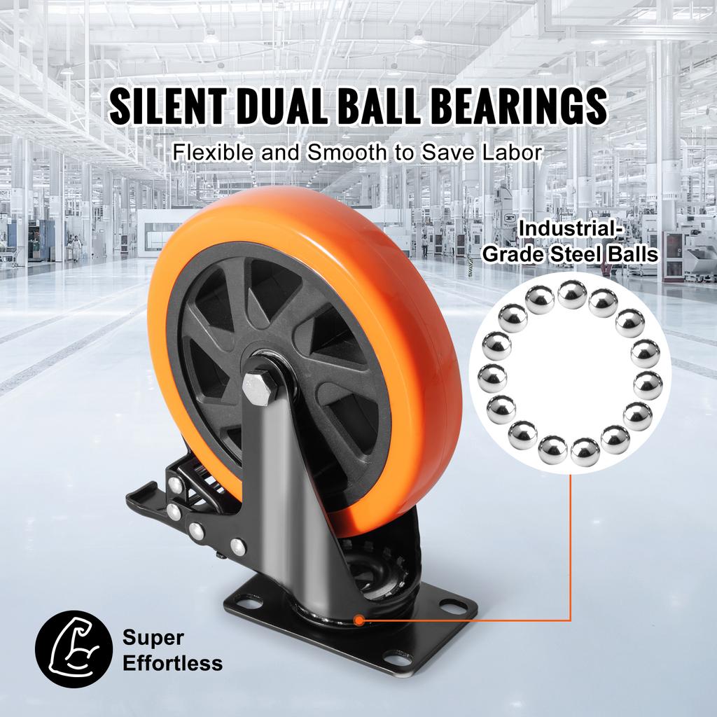 SucceBuy 2-6in PVC Furniture Caster Wheels Set of 4 Swivel Plate Casters with Security A/B Lock Non-Marking for Cart Workbench