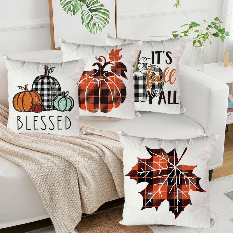 Autumn Thanksgiving Throw Pillow Cover Home Sofa Decoration Linen Print Pumpkin Harvest Cushion Cover
