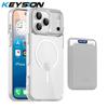 KEYSION Magnetic PU Card Holder Bag Phone Case for MagSafe for iPhone 17 Pro Max 17 Air Transparent TPU+PC Shockproof Back Cover