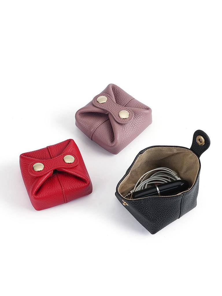 Urocza japońska i koreańska mini portmonetka ze skóry bydlęcej na monety, słuchawki, szminkę i klucze