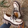 Large size thick-soled patent leather small leather shoes women's round head lace-up color matching thick heel retro heightening loafers