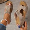 Direct supply of foreign trade large size 2025 new women's wedge heel fish mouth thick-soled rivet sandals