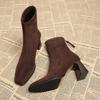 Vintage Damskie Botki do Kostki z Kwadratowym Noskiem Modne Zamki Grube Obcasy Buty Zimowe Eleganckie Nowoczesne Krótkie Botki