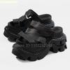 Letnie Nowe Kapcie na Platformie 2025 Kliny 6-8cm Czarne Casualowe Klapki Odkryte Palce Styl Punkowy Antypoślizgowa Gumowa Podeszwa Sandały