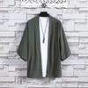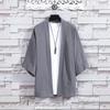 Męska letnia cienka szata Hanfu z bawełny i lnu - styl chiński, krótki rękaw, płaszcz Zen