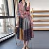 2025 Wiosna/Lato Lniana Sukienka z Dekoltem V, Kwiatowa, Retro, Etniczna, w Bloki Kolorystyczne, Luźna, Casualowa