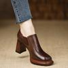 Retro Thick Soled Waterproof Platform High Heels Women Coarse Heels Spring New Style Non Tiring Deep Square Head Shoes