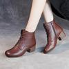 GKTINOO Jesień Zima Ciepłe Buty Damskie 2025 Retro Ręcznie Robione Sznurowane Prawdziwa Skóra Okrągły Nosek Damskie Grube Obcasy Botki