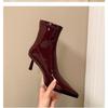 Red Patent Leather Female High Heels Autumn Sexy Pointed Toe Women's Ankle Boots Solid Color Simple Stiletto Shoes Zapatos