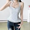 2024 Summer Polka Dot Chiffon Off-Shoulder Camisole - Slim Fit Sexy Style Women's Top