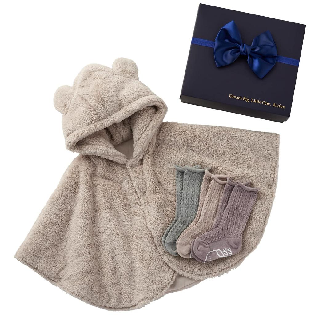 Kufuu Baby Poncho Skarpety Pudełko Zestaw Prezentowy dla Niemowlaka & (Beż piaskowy, Niedźwiedź) - (Lawenda Cynamon)