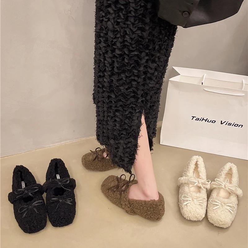 Fashion Sweet Mao Mao Shoes Women's Outer Wear Autumn and Winter 2024 New Fleece-lined Bean Shoes All-match Flat Warm Cotton Shoes