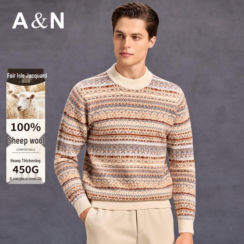 Men's 100% Pure Wool Fair Isle Contrast Pullover Sweater