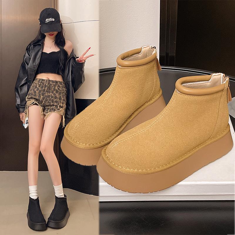 Versatile platform cotton shoes women's shoes 2025 autumn and winter new casual big head ugly cute zipper maroon women's cotton shoes