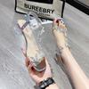 Women wear 2025 new thick heel sandals Internet celebrity transparent crystal rhinestone fashion bow fashion high heel sandals