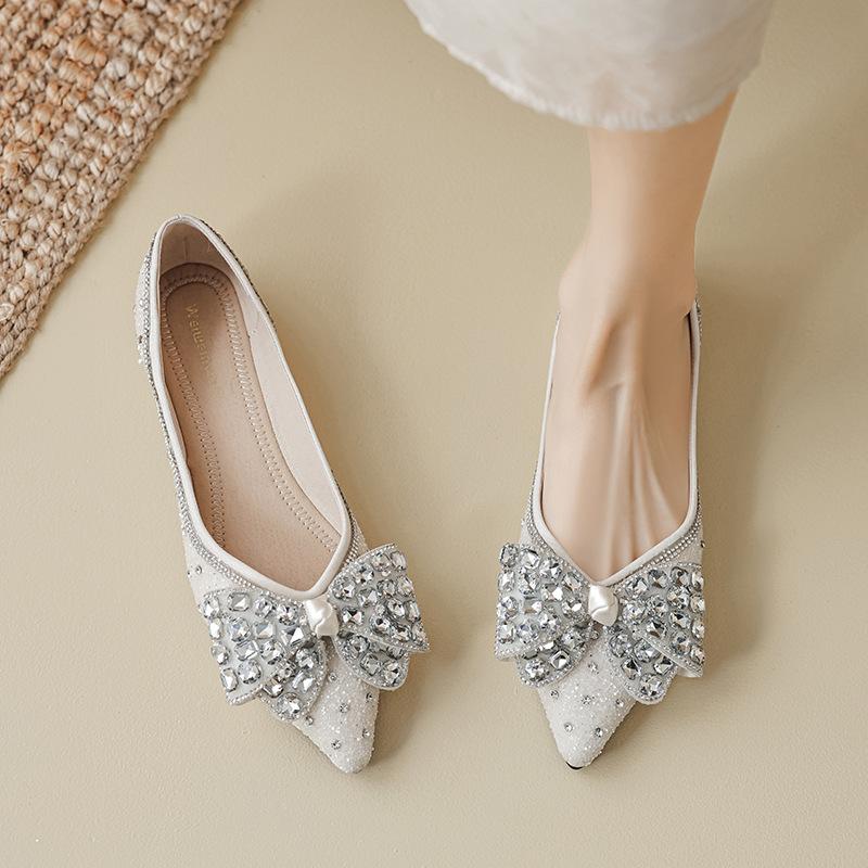 Weiwei girl 5933-8 szpiczaste buty damskie na płaskiej podeszwie 2025 nowe płytkie wsuwane buty z dżetami damskie