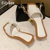 Fashion Eilyken Square Head Pinch Slippers Crystal Transparent Ball Low Heel Clear Women Flip Flops Slides Fashion Design Green Size 43