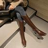 Moda 2025 Nowe Zimowe Kozaki do Kolan dla Kobiet Kwadratowy Nosek Kozaki Rycerskie Skóra Dzielona Kozaki Damskie Wysokie Obcasy Zwięzłe Kozaki De Mujer