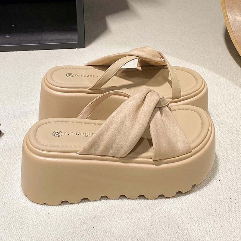 Modne NOWE Casualowe Klapki na Koturnie 8CM dla Kobiet Lato Antypoślizgowe Sandały na Platformie Kobieta Odkryte Palce Wygodne Damskie Grube Klapki na Plażę