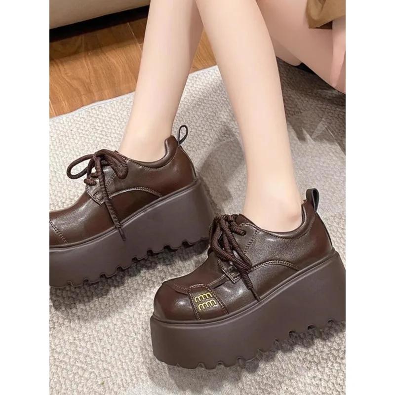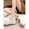 8CM Obcasy Nowe 2025 Wiosna Damskie Skórzane Sneakersy Wysoka Platforma Sznurowane Buty Codzienne Gruba Podeszwa Czółenka do Chodzenia Zapatos Mujer
