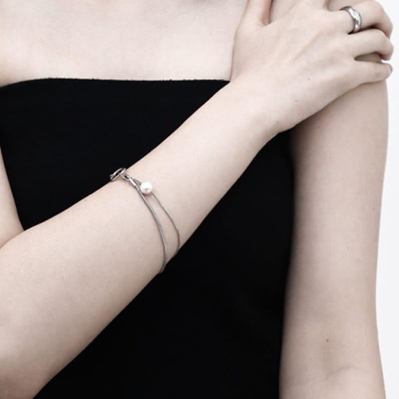 Baroque Stone Two Chain Pearl Bracelet