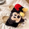 Jednowyrazowe trójwymiarowe Mickey puszyste kapcie na grubej podeszwie jesienno-zimowe modne kreskówkowe do noszenia na zewnątrz ciepłe bawełniane kapcie na pół stopki dla dziewczynek