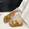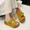 Seaside beach sandals with buckle round skirt cool slippers women's retro one-word thick-soled slippers 2025 summer