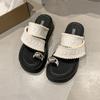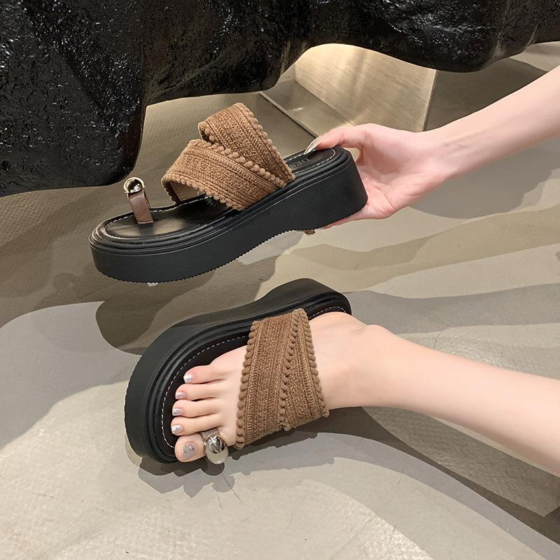 High-end woven open-toed slippers, women's summer going out for leisure and looking thin, foreign and light temperament, beach cool slippers