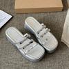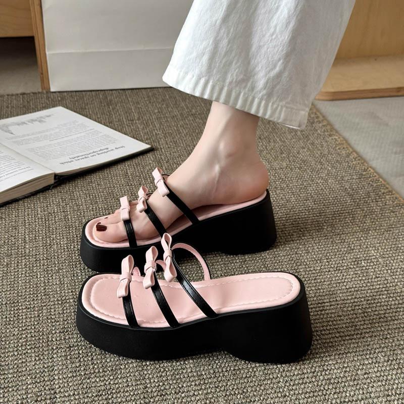 French beautiful bow slippers female summer wear 2025 fairy style thick bottom open toe wedge heel high heel sandals