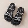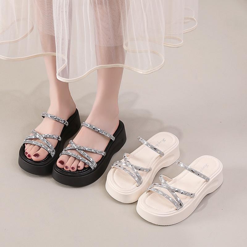 2025 summer new thick bottom with diamond slippers fashionable Internet celebrity heightening slippers small cool slippers