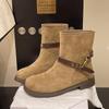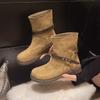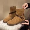 Coarse Heel Belt Buckle Martin Boots Women's 2025 Autumn Platform Cowboy Boots Vintage Coarse Heel Locomotive Short Boots Pile Boots