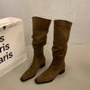 Gruby obcas szpiczasty zamszowe cienkie kozaki buty damskie 2025 nowe jesienno-zimowe wersja koreańska długie kozaki za kolano kozaki oficerskie