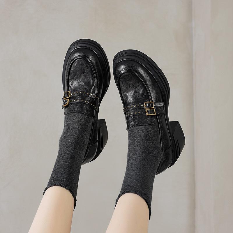Miękki! Skóra owcza~ gruba podeszwa na obcasie buty jednolite damskie 2025 nowe mokasyny na wysokim obcasie damskie głęboki dekolt jeden pedał małe skórzane buty
