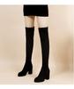 Moda 2024 Damskie obcasy z imitacji zamszu Jesienne botki do kolana na zamek elastyczne dla kobiet Sznurowane kozaki za udo Czarne Botas Mujer
