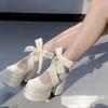 Projektant Mody Platforma Damskie Buty Mary Jane Buty Czółenka do Sukienki Moda Eleganckie Buty na Grubym Obcasie z Paskiem Krzyżowym Damskie Buty w Stylu Kolegialnym