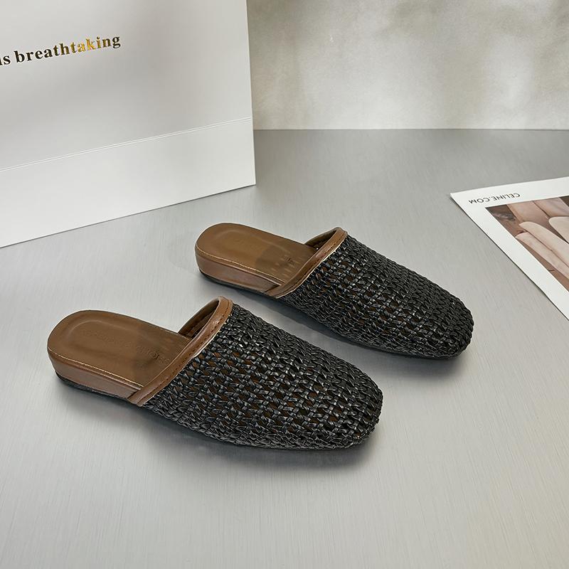 Modne Tkane Damskie Kapcie Casualowe Mokasyny Buty Kobieta Muły Płaskie Sandały Lato 2025 Trend Wygodne Miękkie Skórzane Płytkie Sukienka Zapatos