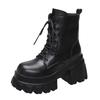 Moda Luksus Jesień Kobiety Wysoka Platforma Botki do Kostki Zima Gruba Podeszwa Buty Motocyklowe Obcasy 9,5 CM Grube Metalowe Krótkie Skórzane Sneakersy