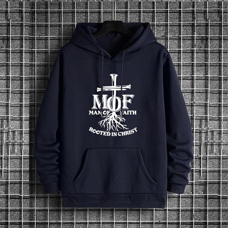 Autumn Winter Warm Pullover Man of Faith Print Hoodies 2025 Urban Streetwear Hip Hop Hooded Sweatshirt Male Trendy Casual Hoody