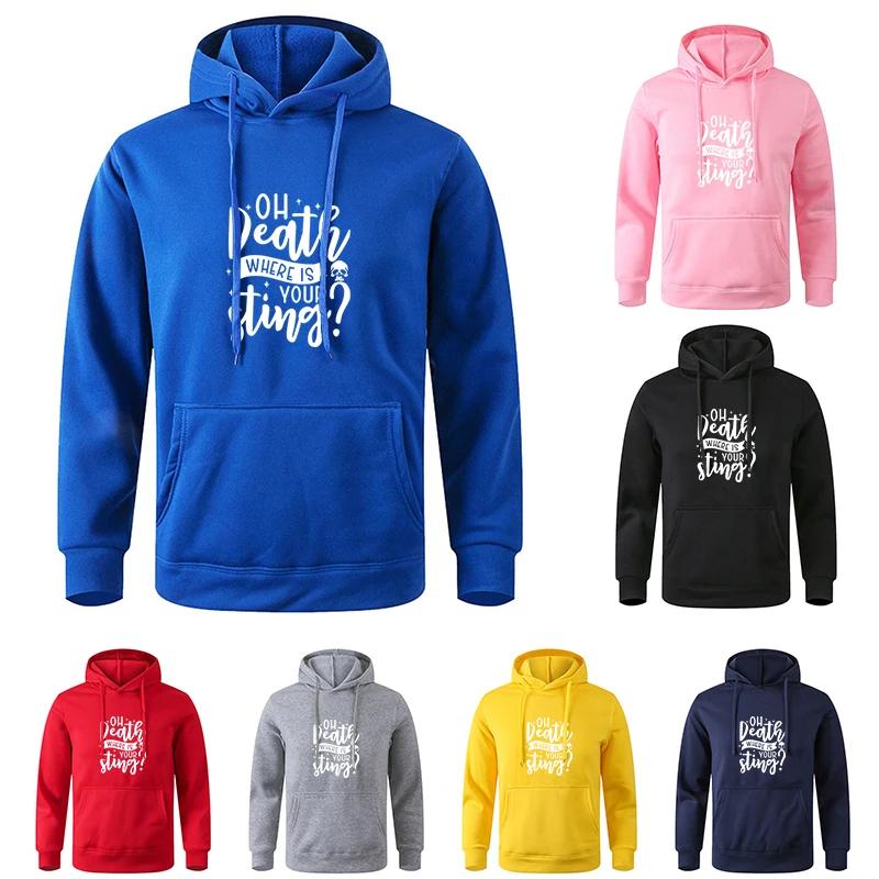 Autumn Fleece Pocket Loose Hooded Long - Sleeve Drawstring Printed Korean Fashion Sweatshirt with Drawstring Pocket Hoodie
