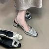 Retro small fragrant wind pearl bag head sandals women's summer new silver premium Mary Jane rear empty single shoes