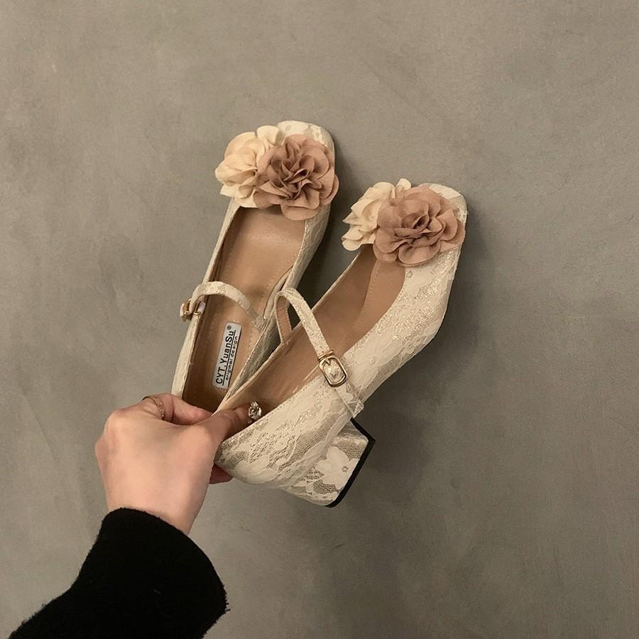 Francuski bajkowy styl gruby obcas Mary Jane pojedyncze buty damskie buty nowy design kwiat kamelii buty wieczorowe