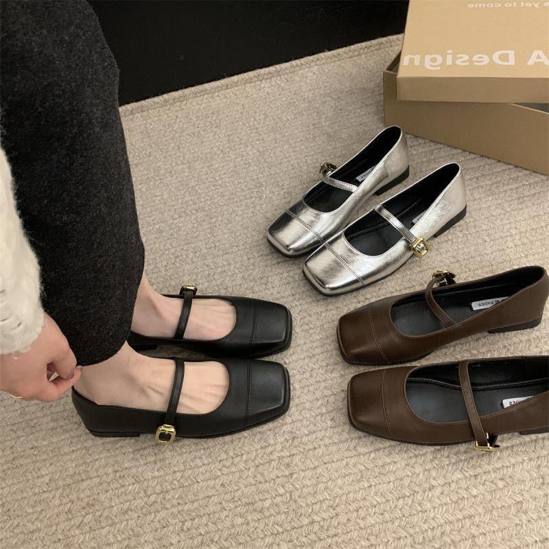 Buty Mary Jane płytkie z klamrą buty pojedyncze wiosenne nowe kwadratowy nosek płaska podeszwa miękka podeszwa wygodne Doudou buty damskie