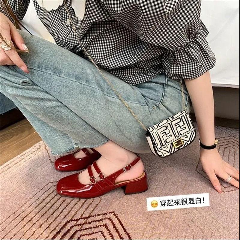 Antu dziewczęca okrągła torba na głowę głowa gruby obcas puste sandały damskie lato nowy czerwony buty Mary Jane