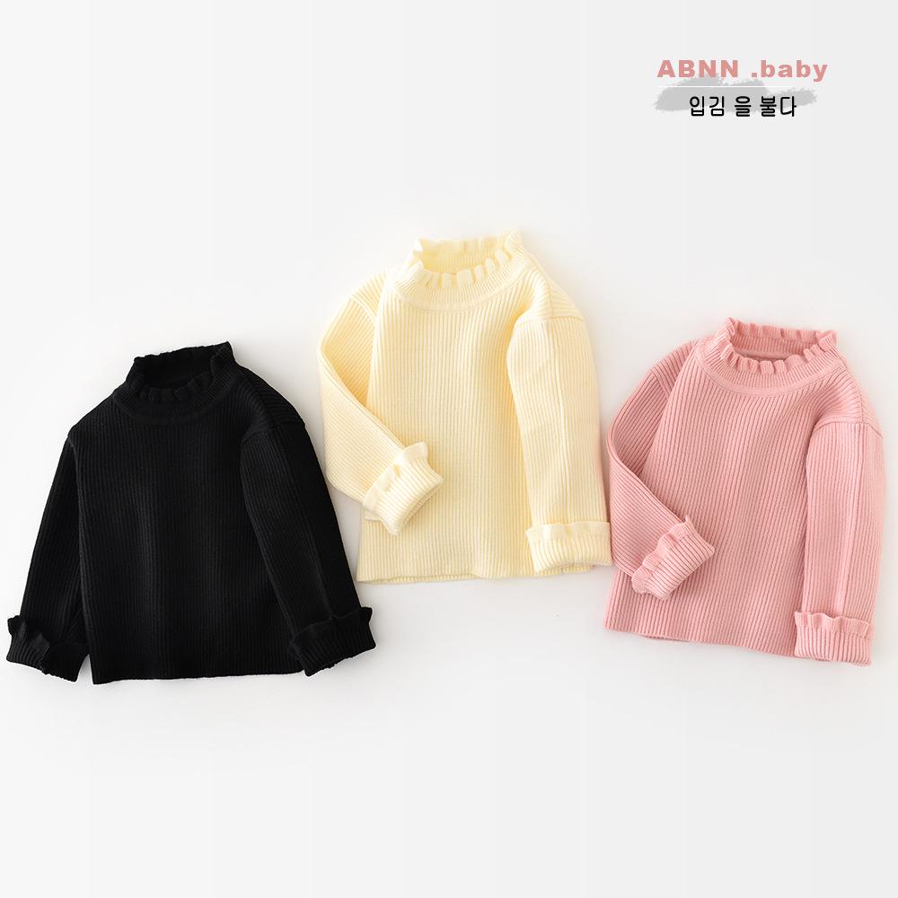 Jesień 2025 Dziecięcy sweter z koronką z wysokim dekoltem w jednolitym kolorze - Warstwa bazowa dla niemowląt i małych dzieci, ciepły top