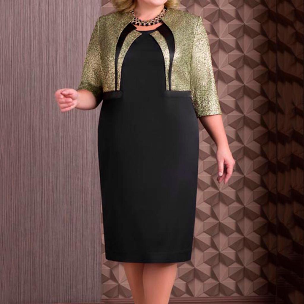 Elevate your evening wardrobe with this elegant plus-size dress. Crafted from high-quality polyester, this sleeveless pullover design features a sophisticated round neck. The standout element is the shimmering sequined shawl spliced into the dress, adding a touch of glamour and making it perfect for special occasions. Designed for comfort and style, it beautifully flatters and enhances your silhouette. Ideal for a night out, this dress ensures you make a memorable entrance.