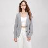 Europejski Kardigan High-End Plus Size z Dekoltem w Serek - Jednokolorowa Dzianina z Guzikami