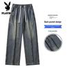 Playboy Men's Summer Loose Straight-Leg Jeans offer comfort and style for warm weather. These trendy, casual long pants are perfect for outdoor activities, featuring a relaxed fit and straight-leg design.