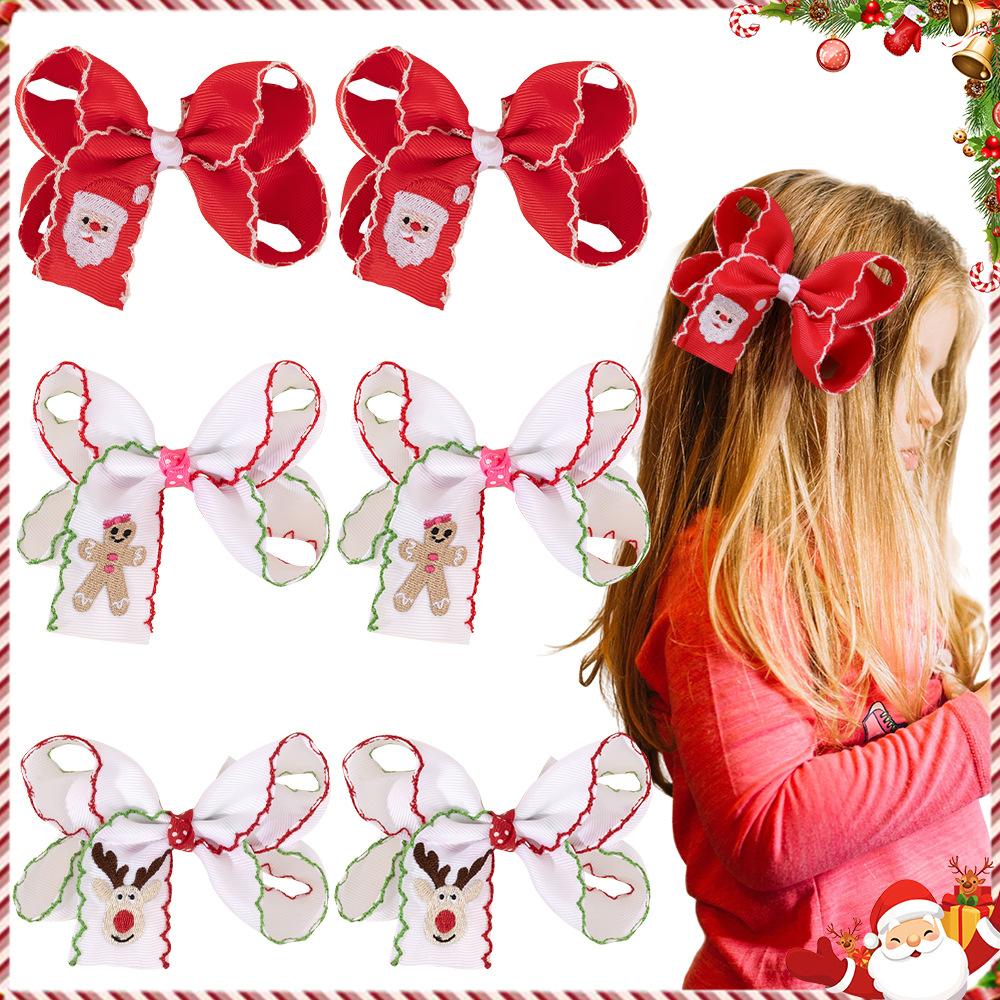 Children's three-dimensional lock edge bow children's hair clip Santa Claus embroidery thread band hair clip handmade baby hair accessory